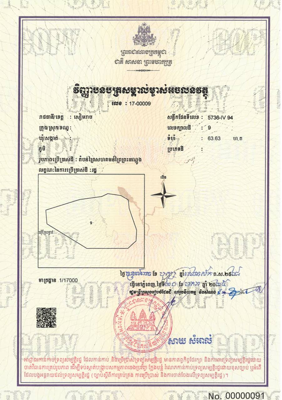 The Preah Andong Community Forest Area in Siem Reap Province, covering an area of 63.63 hectares, is registered as state land.