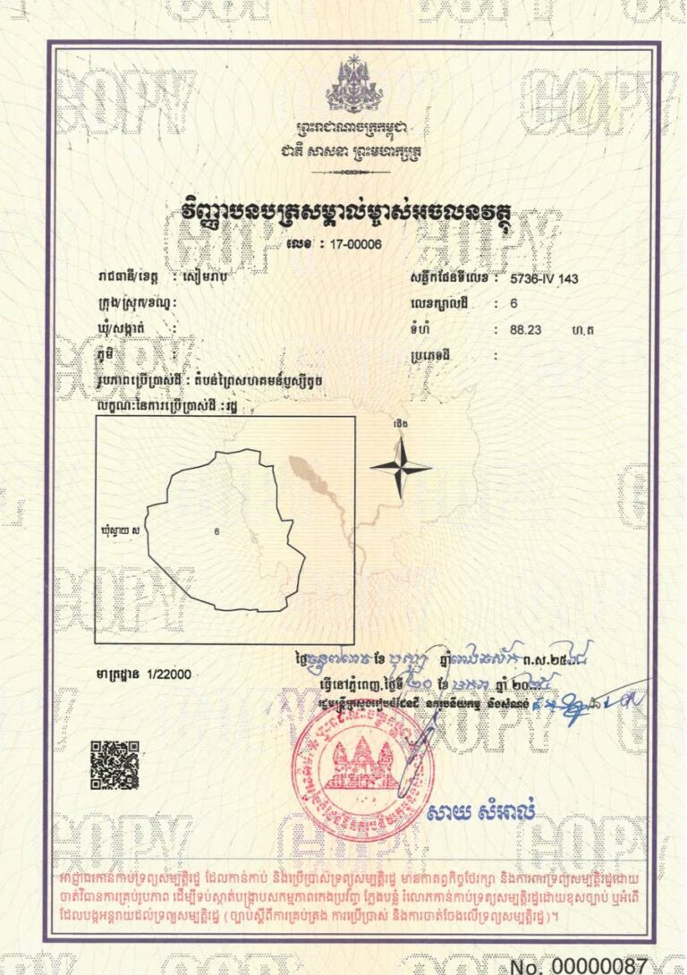 The 88.23 hectare small bamboo community forest area in Siem Reap Province has been registered as state land.