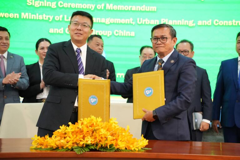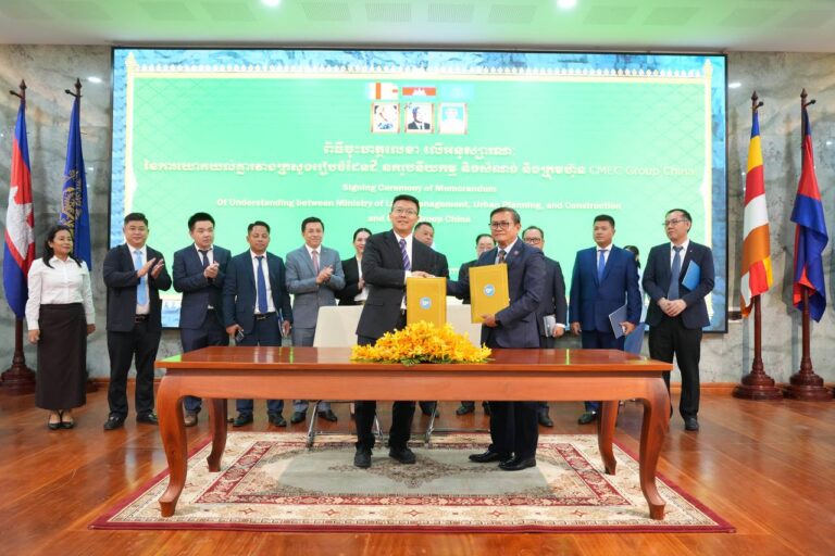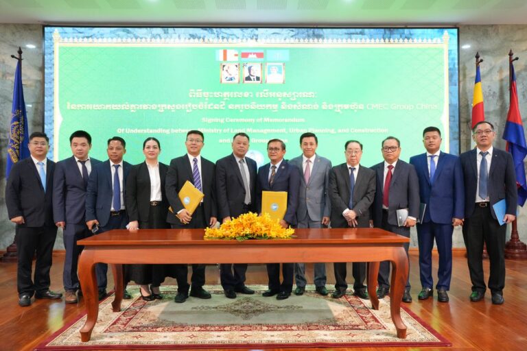 (Phnom Penh): Ministry leaders held a working meeting and a signing ceremony for a memorandum of understanding between the Ministry of Land Management, Urban Planning and Construction and CMEC Group China at the ministry’s headquarters on August 2, 2024. CMEC Group China stated that the meeting was held to discuss the participation in the historic inauguration of the Funan Techo Canal on August 5.