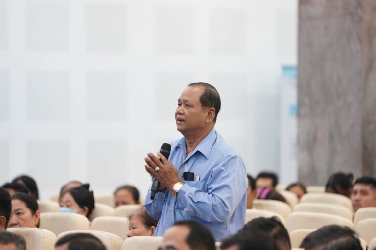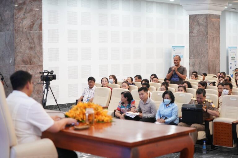 The Ministry of Land Management, Urban Planning and Construction met with residents living in the former Angkor Meanchey Hotel, an old and dilapidated building, to discuss solutions to achieve a new happy home