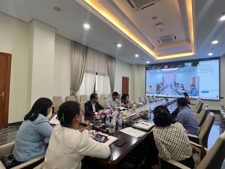 Her Excellency Secretary of State Tep Boramin and her team are invited to meet with the working group of the Ministry of Social Affairs, Veterans and Youth Rehabilitation to review the 3-year progress report on the implementation of the 2021-2025 Action Plan of the National Policy on the Elderly 2017-2030 via the online system, with the participation of several relevant leaders and officials.