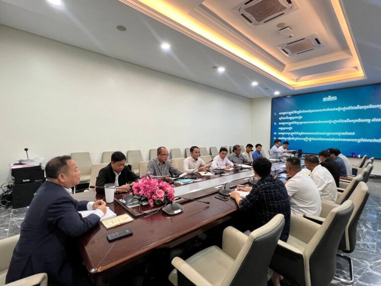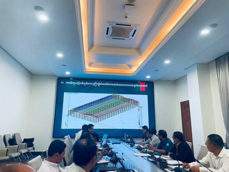 His Excellency Secretary of State Lao Tipsaih invited to lead a meeting to review technical issues of a steel structure construction site in the Sinbavet Special Economic Zone, Trapaing Bon Village, Kakir Commune, Chantra District, Svay Rieng Province.