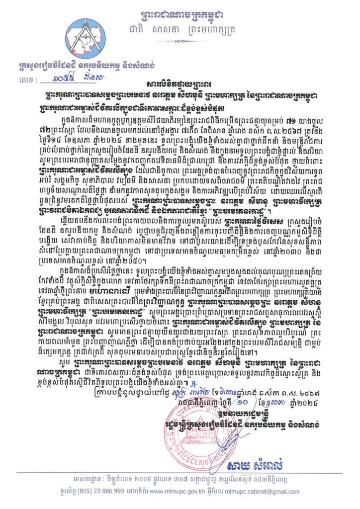 Message of Blessing to His Majesty Preah Bat Samdech Preah Boromneath Norodom Sihamoni, King of the Kingdom of Cambodia