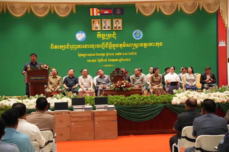 (Koh Kong): The leadership of the Ministry of Land Management, Urban Planning and Construction highly appreciates Koh Kong Province, which has been making significant contributions to transforming the Cambodian coastal economic corridor into a stronger one. Based on this, land registry officials and all stakeholders must pay attention to completing land registration, ending land disputes, and providing satisfactory services to the Cambodian people.