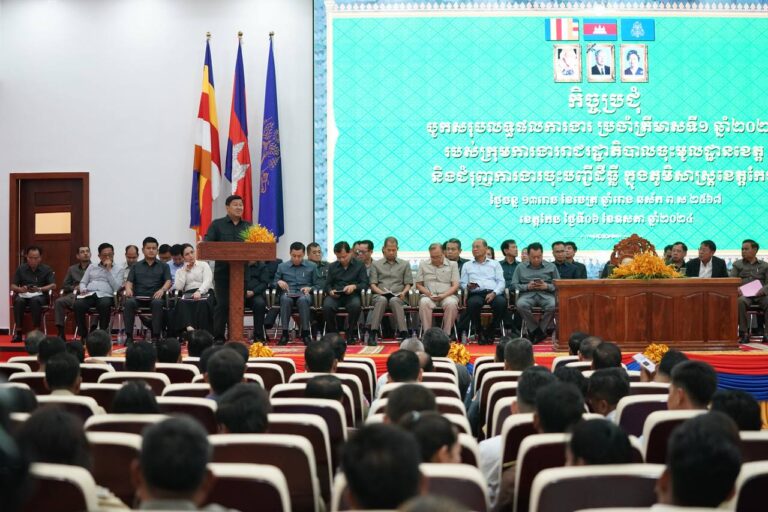 His Excellency Deputy Prime Minister Say Samal spoke at the meeting to summarize the results of the first quarter of 2024 of the Royal Government Working Group on Provincial Land Registration and Promoting Land Registration in the Geography of Kep Province on the morning of May 6, 2024 at Kep Provincial Hall.