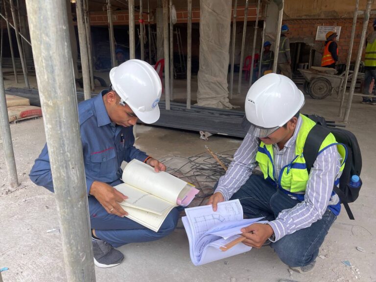 The technical team of the General Department of Construction came to raise awareness about the construction technical standards of the Wing Bank building improvement project located at plot number 0051, Village 6, Kampong Thom Sangkat, Stung Sen City, Kampong Thom Province.