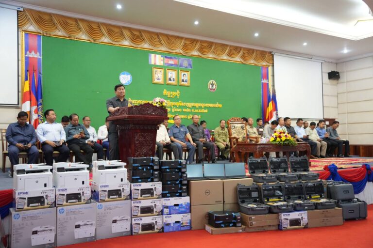 On that occasion, His Excellency the Deputy Prime Minister also handed over equipment to the Department of Land Management, Urban Planning, Construction and Cadastre of Banteay Meanchey Province to promote land registration work, including: 20 measuring machines provided using funds from the LASED III project, 4 desktop computers, 4 laptops, 3 A4 printers, 4 scanners and 9 Epson printers.
