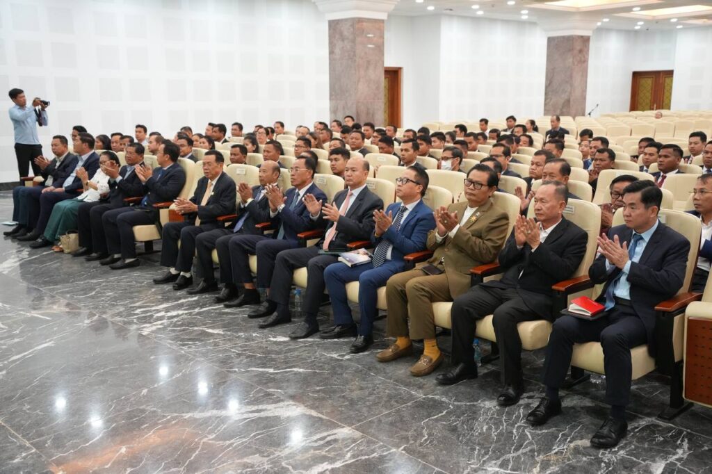 His Excellency Say Samal, Minister of the Ministry of Land Management, spoke on the morning of March 20, 2024, at the graduation ceremony for the 11th, 12th and 13th batch of Associate Degree in Cadastre graduates who received training from the Ministry’s Vocational Training Center.