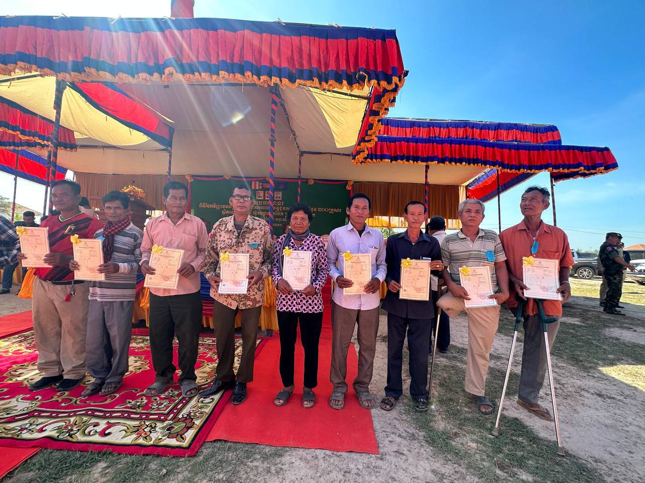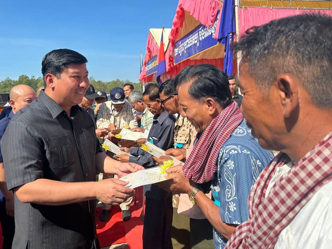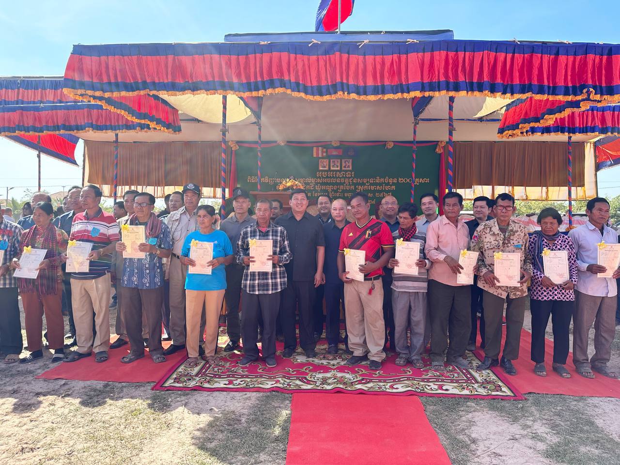 (Svay Rieng): With due consideration for the welfare and livelihood of poor citizens, veterans and their families, the Royal Government of Cambodia has provided real estate ownership certificates to 200 families of social land concessionaires in Chik Dey Village, Andong Trabek Commune, Romeas Hek District, Svay Rieng Province on the morning of January 16, 2024.