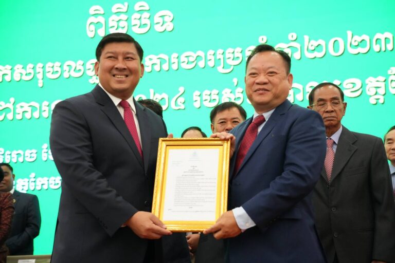 His Excellency Deputy Prime Minister Say Samal, Minister of the Ministry of Land Management, Urban Planning and Construction and Chairman of the Royal Government Working Group in Kep Province, spoke at the closing ceremony of the 2023 annual work results and 2024 work direction of the Kep Provincial Administration on the afternoon of January 5, 2024.