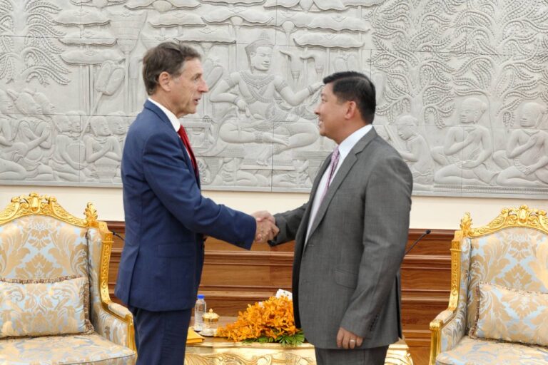 (Phnom Penh): His Excellency Deputy Prime Minister Say Samal, Minister of the Ministry of Land Management, Urban Planning and Construction, warmly welcomed Mr. Jacques Pellet, Ambassador of the French Republic to the Kingdom of Cambodia, and highly appreciated the bilateral cooperation between the Kingdom of Cambodia and the French Republic, during a working meeting on Wednesday, December 6, 2023.