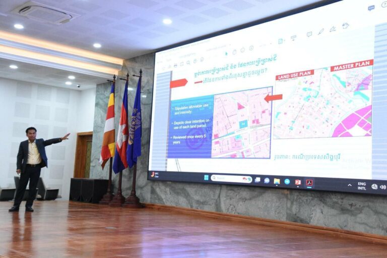 His Excellency Deputy Prime Minister Say Samal, Minister of the Ministry of Land Management, Urban Planning and Construction, thanked and appreciated all the participants who were willing to volunteer their time to help the work of the ministry and to participate in the training course on legal principles and procedures related to the ministry’s fields of expertise.