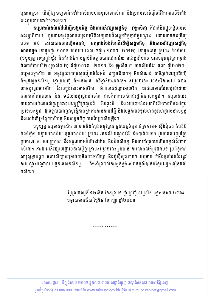 The Royal Government has provided social land concessions to 333 poor families in Oddar Meanchey province under the local social land concession program
